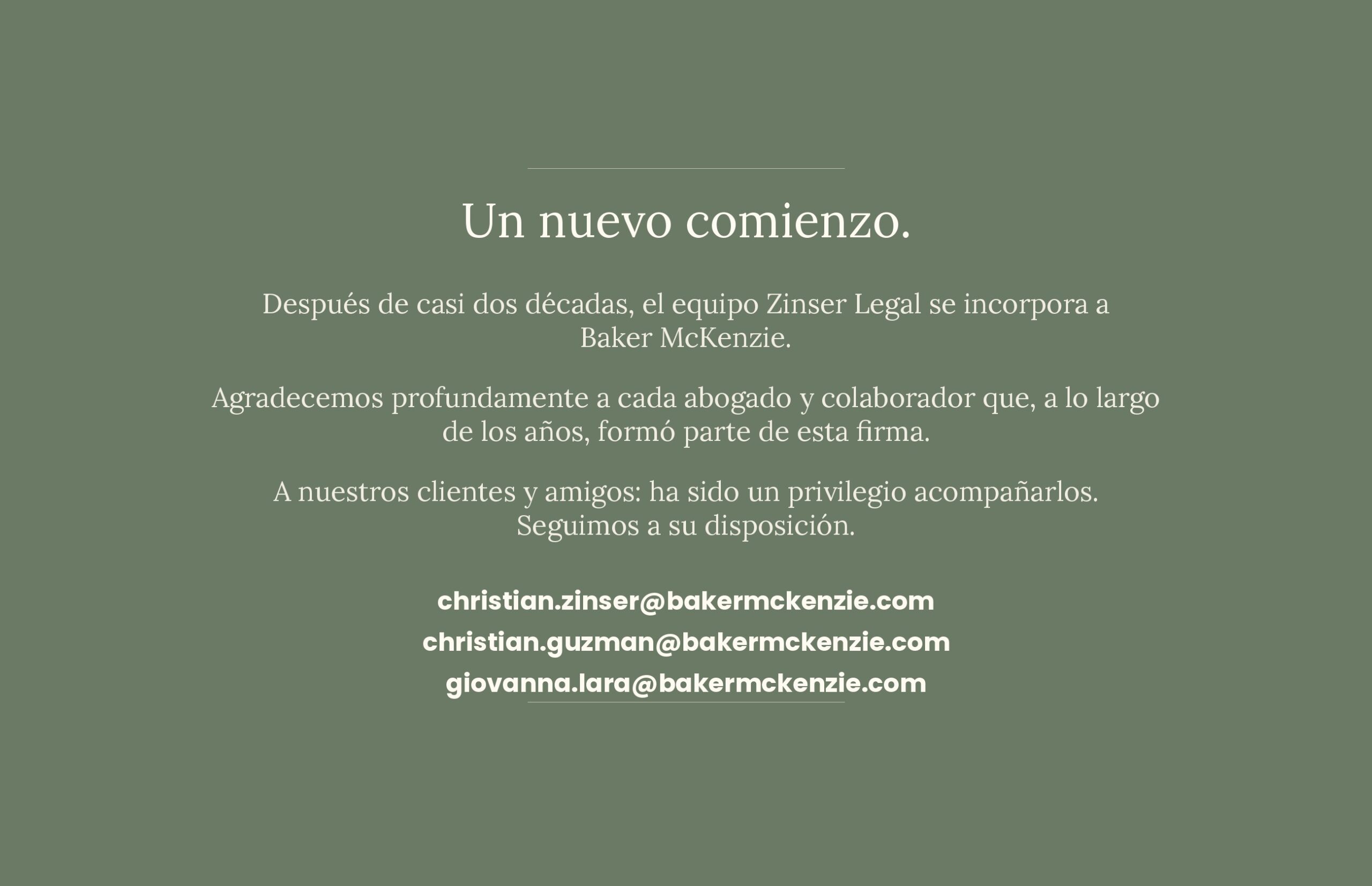 ZINSER Legal® es una firma boutique de abogados fundada en 2006 y especializada en asesoría, litigio, arbitraje y manejo de crisis